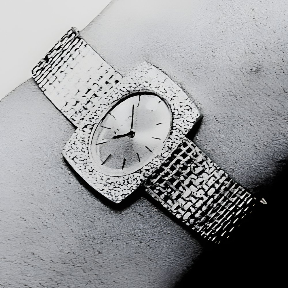 The oval shape of things to come in watches from Switzerland ? If the long transversal case is typical of the “soft look”, the dial opening is plainly elliptic. Luxury note is the studding of the case with brilliants, In i 8ct grey gold. (ZENITH)