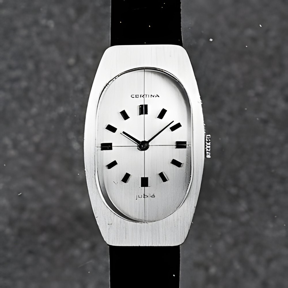 This elongated gold model is a striking example of the soft line ’ s evolution. The circular position of the hour markers vividly underlines the case’s “tonno-au” lines and the rounded rectangle dial aperture. The leather bracelet loads directly into the caso, in conformity with the canons of ttintegrlt? watch design. (CERTINA)