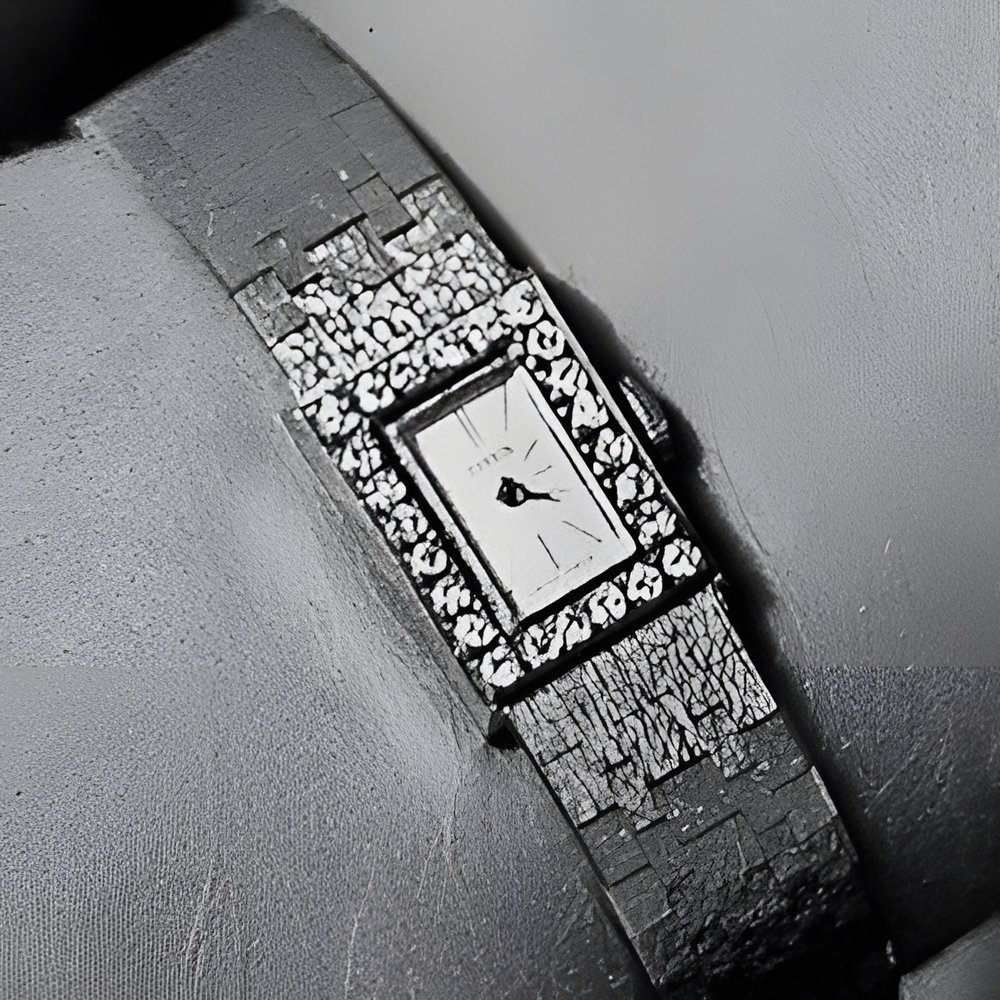 This small rectangular jewellery-watch is a. triumph of classicisruì0 24 diamonds rim the dial. which nestles in the brace- let. (SOLVIL & TITUS)