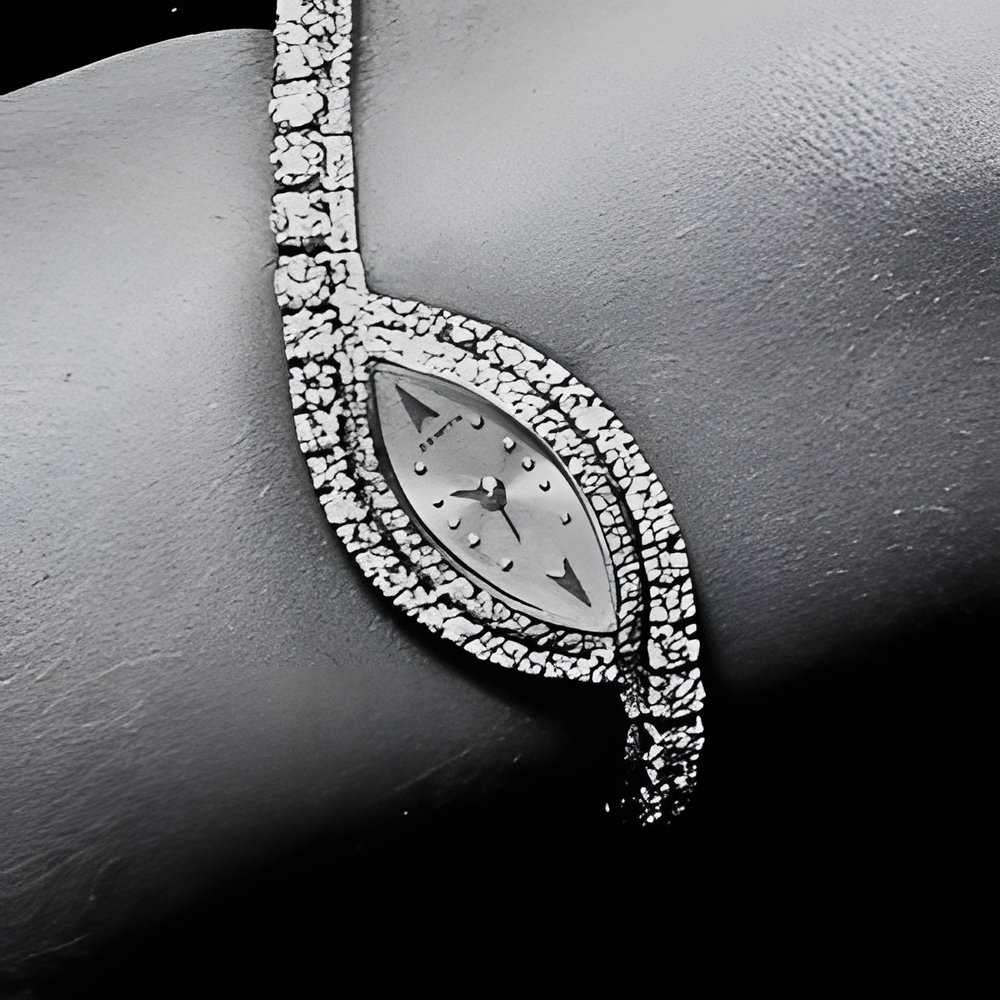 “Diamond riviere” type jewelicry-watches usually bow to traditional designs but this model unhesitatingly chooses modernity. A twin row of diamonds - 170 brilliants in all - parado around the wrist and the oval case. (ZENITH)