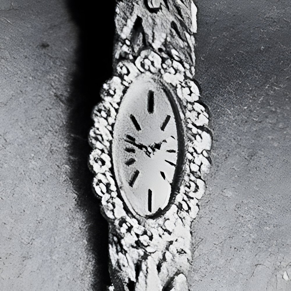 The oval lines of this delicate jewellery-watch are strikingly elongated, nearly navette-like. A row of brilliants underline the case. The yellow gold bracelet is composed of finely engraved “scales”. This type of bracelet, with strongly raised sections, seems to be coming back into fashion. (AUDEMARS PIGUET)