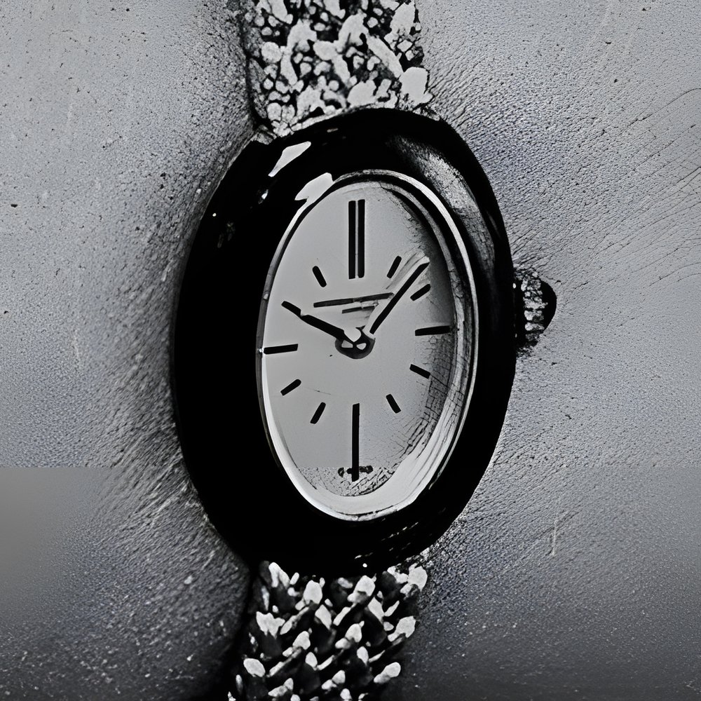 “Montres et Bijoux 1967” witnessed the return of the bassine shape, characterized by a perfectly rounded case side. This model has an oval case in blue enamel. Gilt dial and 18 carat gold-chain-bracelet. (VACHERON & CONSTANTIN)