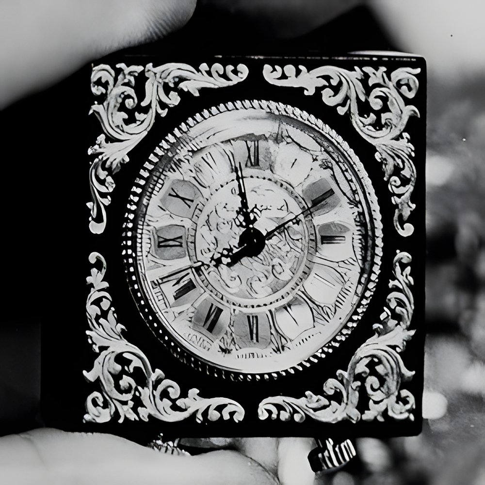 This tiny musical alarm-clock is carved from a mass of jasper ; 18 carat gold appliques decorate the face. Roman numerals in mother-of-pearl cartouches give the dial its ageless elegance. (BUECHE-GIROD)