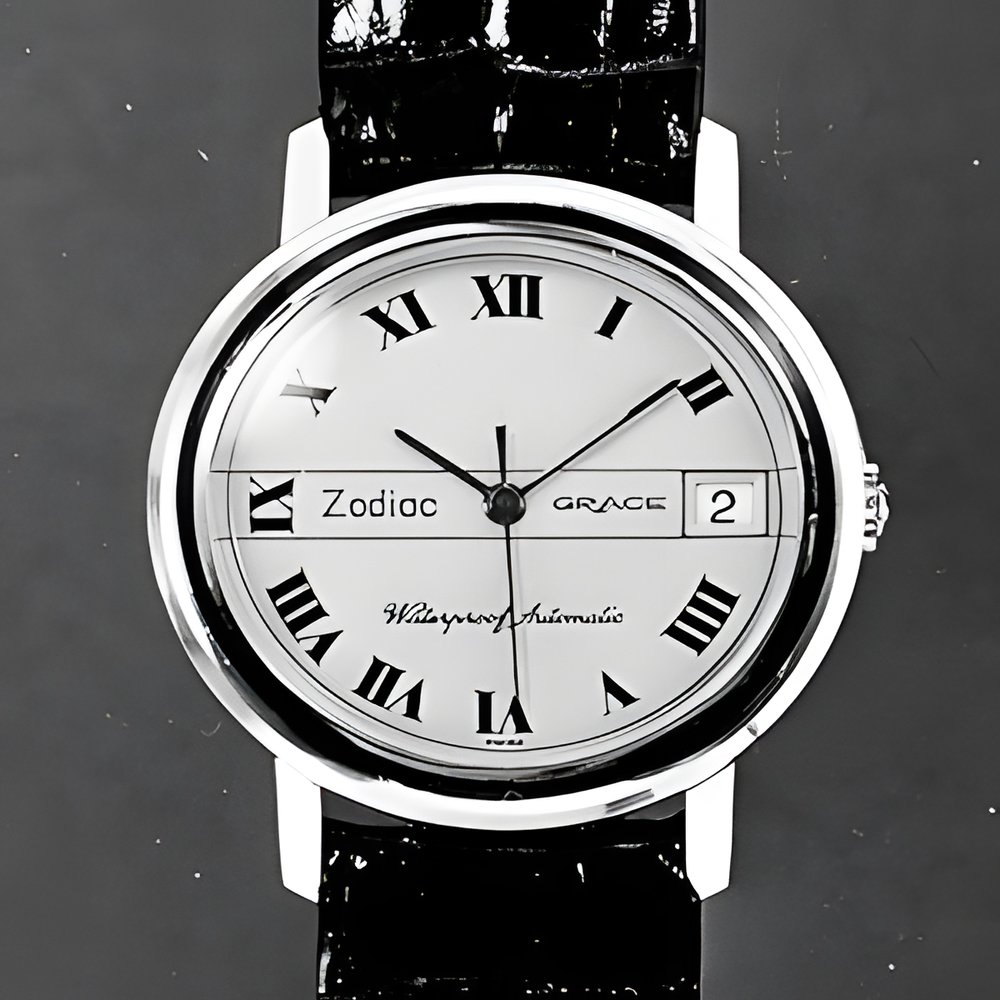 A widened oval silhouette distinguishes this man’s watch in 18 carat yellow gold. Its shape is all the more striking as the case is waterproof. Large Roman numerals, automatic movement, calendar. (ZODIAC)