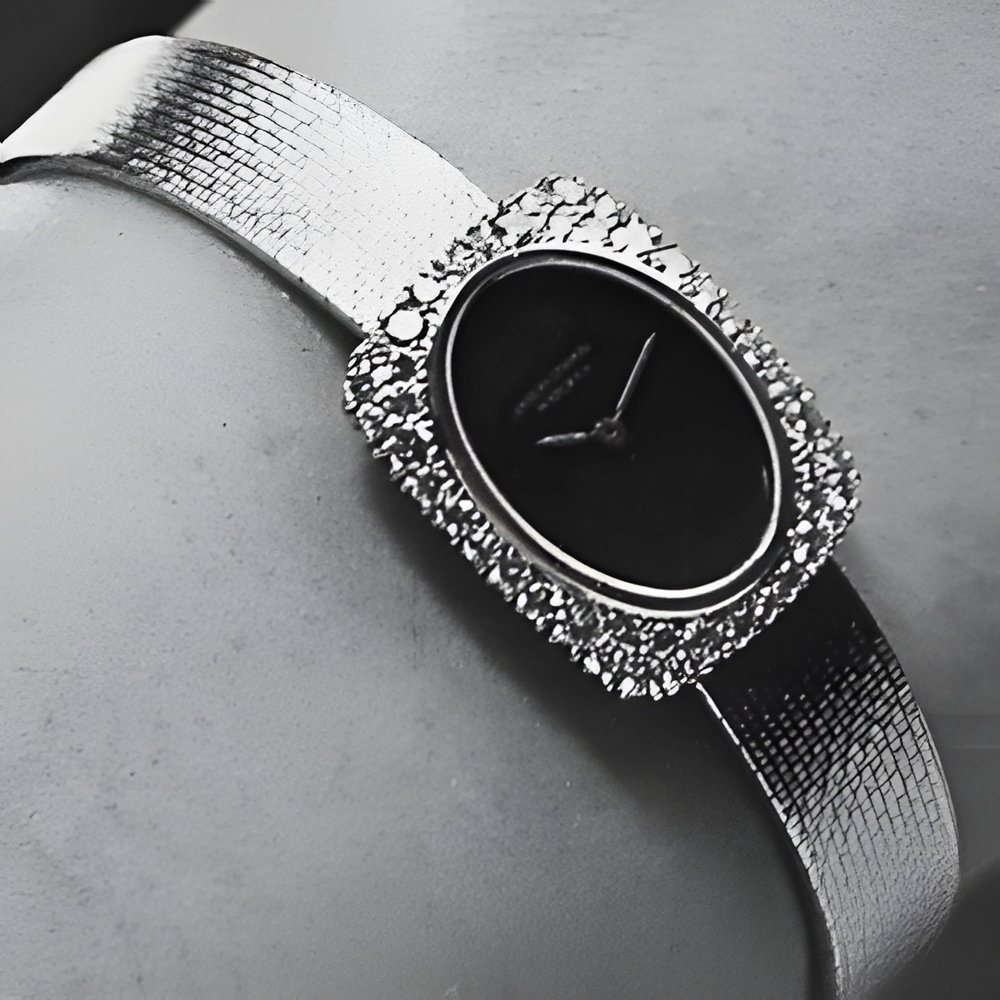 Simple handsome lines : an oval within the round-angled “tonneau” lines of the case. The entire expanse in between is set with brilliant-cut diamonds. Blue dial without hour markers. In 18 carat white gold. (INTERNATIONAL WATCH CO.)