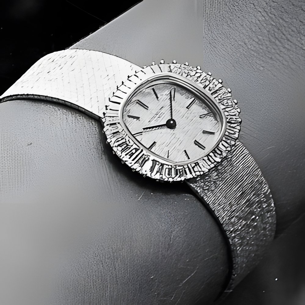 Two styles blend in this model : “Cercle d’Or” for the dial aperture and "Ellipse d’Or foi’ the case rim, stressed with baguette diamonds, individually cut for this piece. Bracelet in 18 carat white gold. (PATEK PHILIPPE)