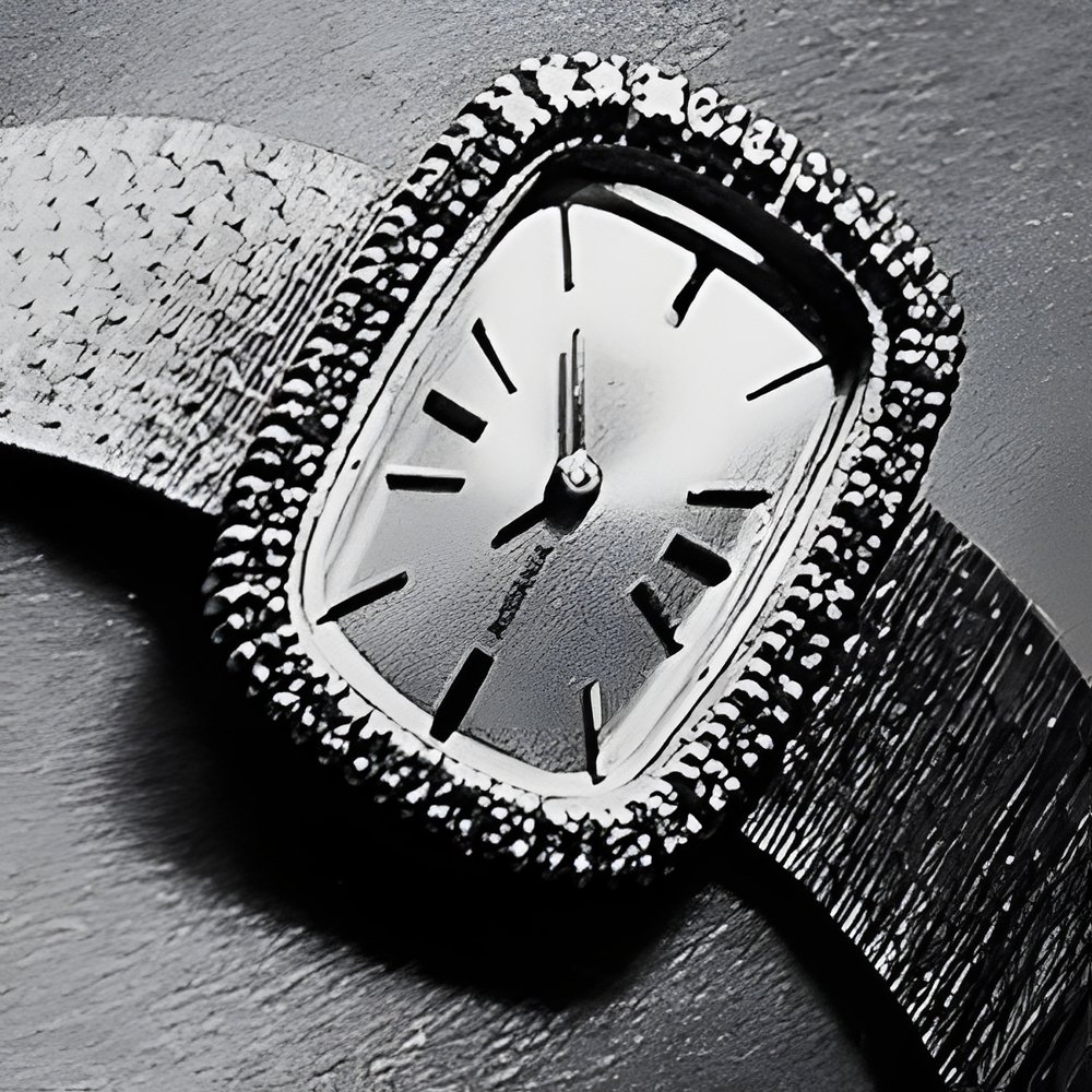 Perfectly representative of the latest fashion, this model has a “romantic” style case from which straight lines and angles are absent. Forty diamonds grace the bezel. The baton markers on the dial are in onyx-incrusted white gold. Bracelet and case in 18 carat white gold. (RODANIA)