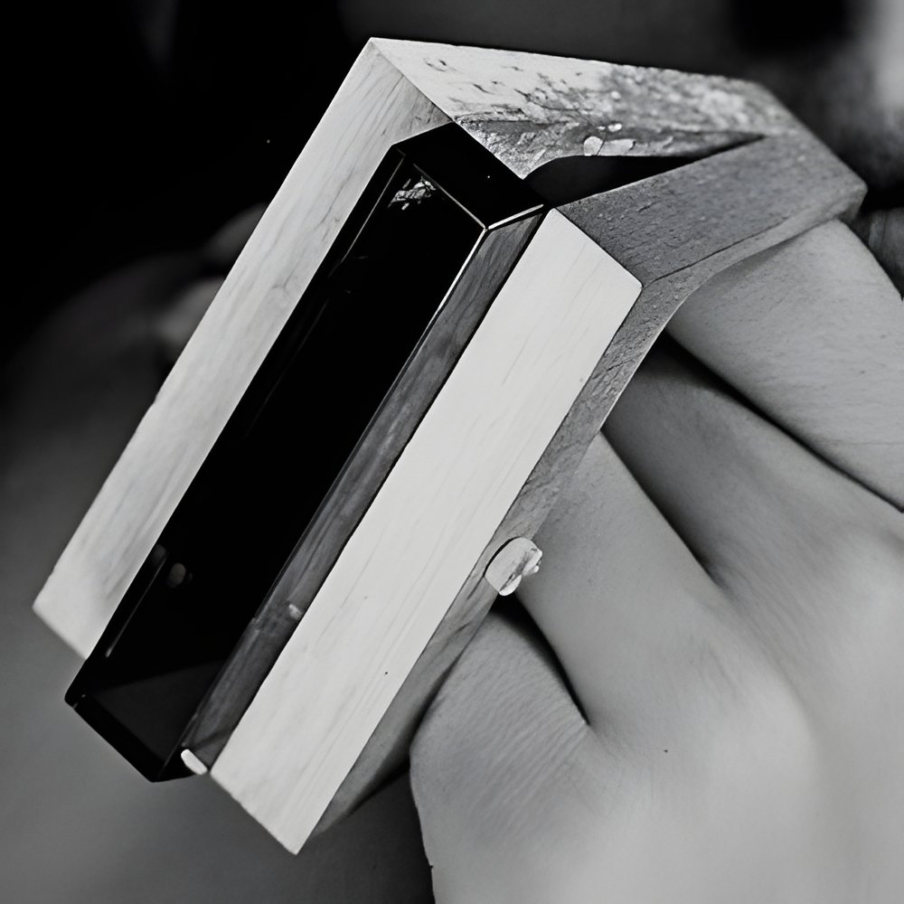 Here is an example of “watch jewellery” with modern styling exclusively composed of straight lines. Though this watch’s design is totally original, it does display the aesthetic unity of case, bracelet and dial typical of today. It also contains a quartz electronic movement. In 18 carat yellow gold. The crystal is a slab of smoked quartz. (OMEGA)