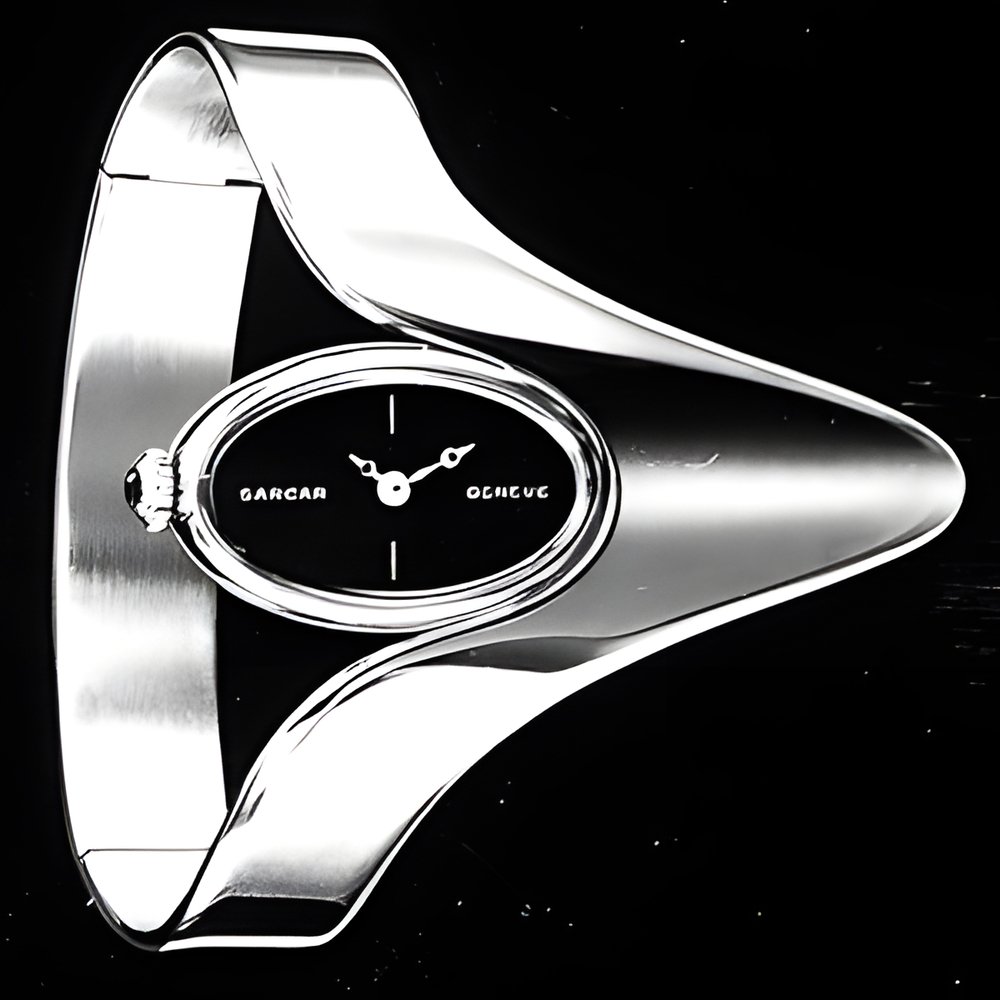 A very representative example of the styling research for which “Montres et Bijoux” is reputed. The “Full Flow” line is most apparent in the bracelet’s graceful design, though the importance given the dial is a significant new trend. In silver. (SARCAR)
