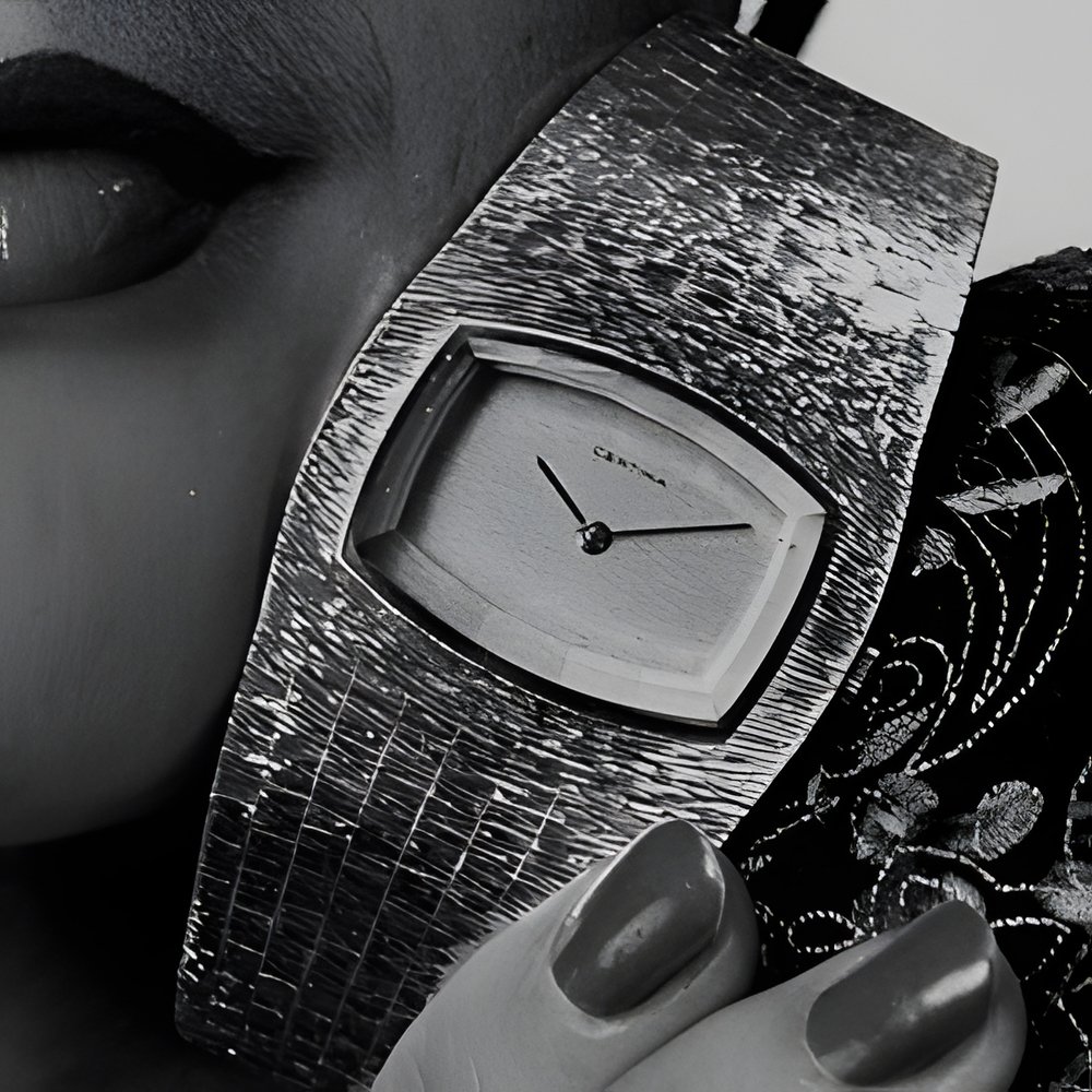 “Full Flow” styling is the 1971 “Montres et Bijoux” Exhibition’ s major fashion line. The “Full Flow” line’s elegance is reflected to perfection in this model subtle unity of case, bracelet and dial. The very pure lines further enhance the chromatic harmony between the engraved yellow gold bracelet and the topaz-yellow sapphire crystal. (CERTINA)