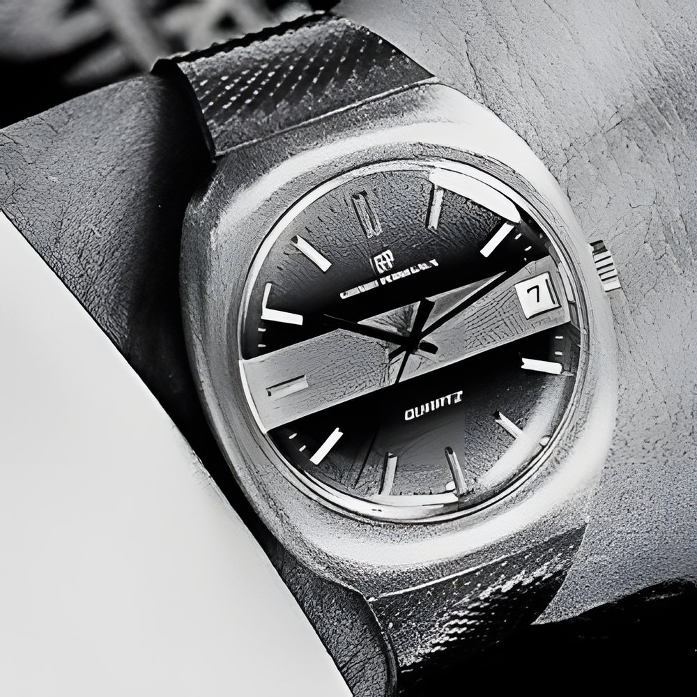 A model cornb.ning technology and styling. The gold case, with integrated bracelet, contains the most recent quartz electronic movement. The quartz vibrates 32,768 times per second, a guarantee of very high precision. A single integrated circuit, equivalent to 300 transistors on a surface of about 3 , performs all the electronic functions (GIRARD-PERREGAUX “Quartz”)