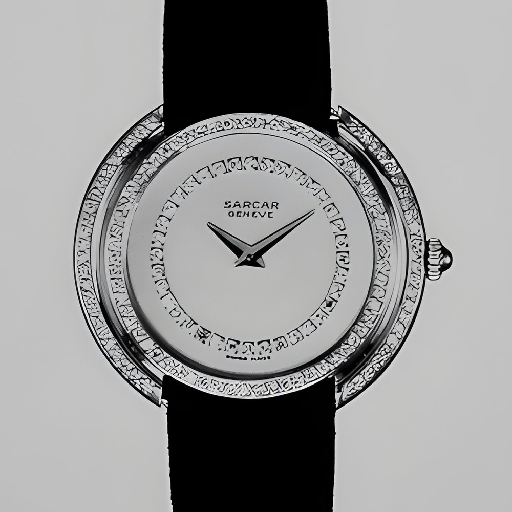 With stepped bezels now in fashion, this model displays concentric circles of polished yellow gold alternating with rows of diamonds. The rhodium-plated dial is also framed with diamonds (146 in all) Pearl-cut crown with white gold cabochon. (SARCAR)