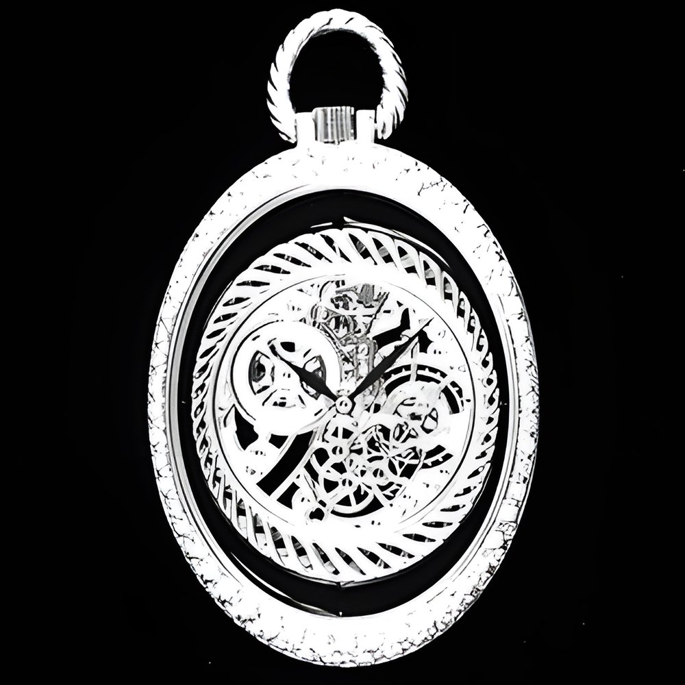 This pocket watch, fitted with an extra-thin skeleton movement, is set with 170 diamonds (2.21 ct) on the front and back The inner ring is onyx. (AUDEMARS PIGUET)