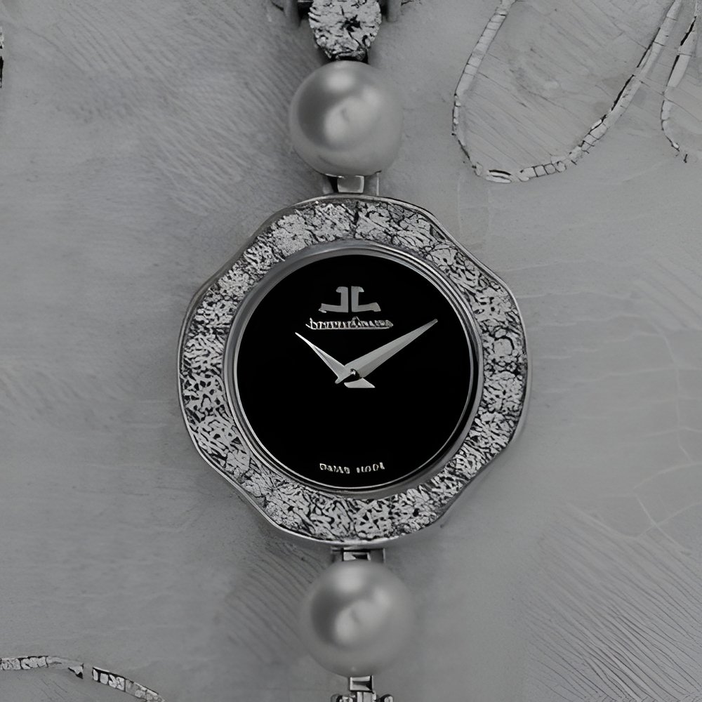 White gold jewellery watch set with 60 flawless Top Wesselton brilliant-cut diamonds weighing 6.70 carats. The bracelet is made up of bouquets of similarly cut diamonds punctuated by 11 round pearls whose “greenish white” lustre and colour enhance the diamonds’ dazzling water. Handwound movement with winder under the case. (JAEGER-LECOULTRE)