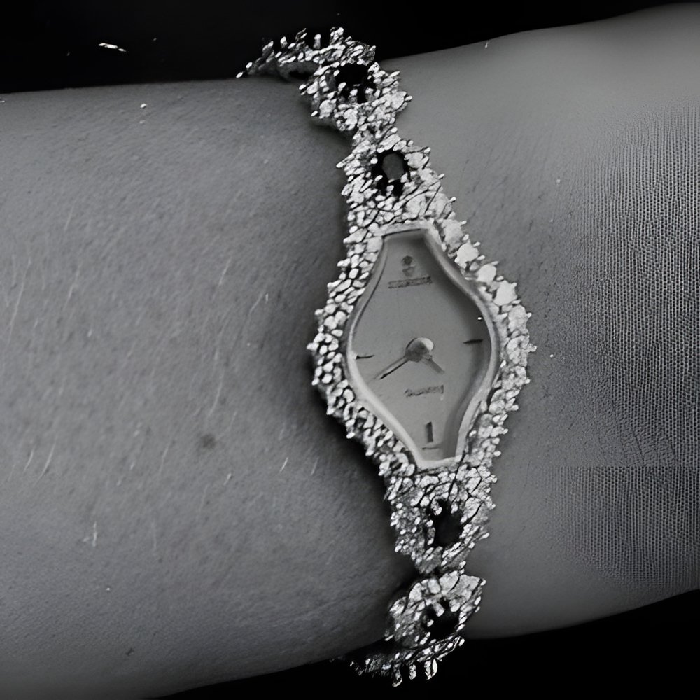 The comeback of soft-line styling is delightfully embodied in this jewellery watch fitted with a miniaturised quartz movement. 16 facetted rubies (3.78 carats) and 154 brilliantcut diamonds (7,84 carats) are mounted on a yellow gold setting. A creation by CORUM.