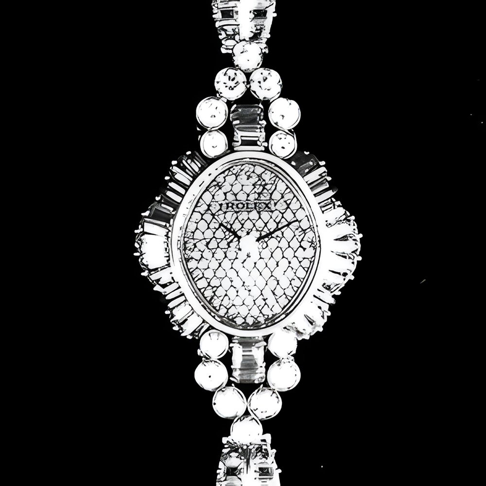 The most dazzling jewellery watches made today display the sleekest and purest of lines. A case in point is this “rivière” watch by Rolex, in 18K yellow gold set with 160 baguette-cut yellow sapphires (11.95 carats) and brilliant-cut diamonds (1.00 carat). The dial is paved with 144 more diamonds, (ROLEX)