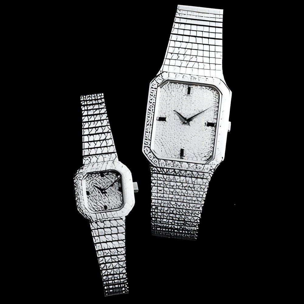 Pure, classic lines endow these designs with striking stylistic unity. These men’s and women’s watches are fashioned from 18K yellow gold. Bezel, bracelet and dial are completely cobbled with brilliant.-cut diamonds. Sapphire hour markers. (PATEK PHILIPPE)
