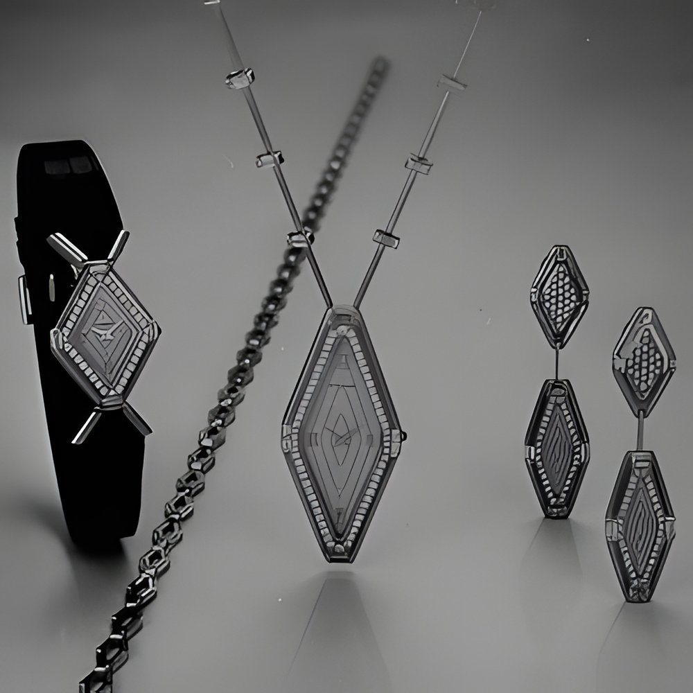 Eterna’s entry at Montres et Bijoux 1983 is a new collection called “Perspectives 90” - very contemporary trapeze-shaped or elongated lines featuring brilliant and baguette cut diamonds set in tricoloured gold : yellow, white and pink. The pendant is fitted with a quartz movement only 1.8 mm thick, the woman’s watch features an original bracelet attachment while the man’s neckchain expresses the new design to perfection. (ETERNA “Perspectives 90”)