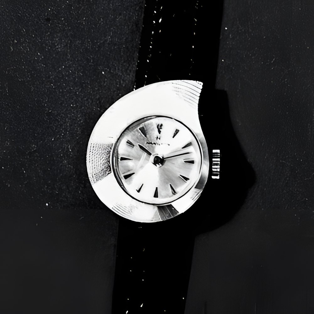 of new ladies’ watches on display in Here, a raindrop seems