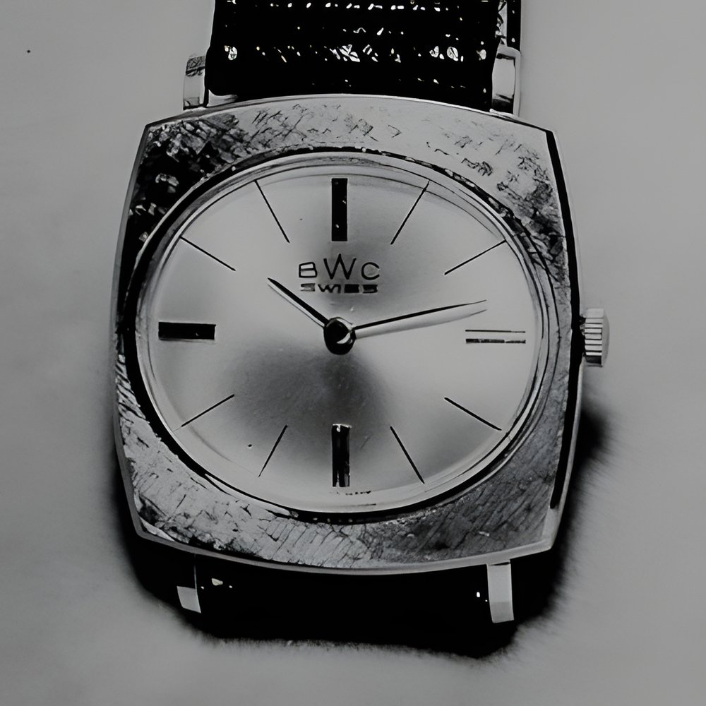 Florentine gold is used to strike a fashionable note in the bezel of this new mant s watch Slight departure from the new square trend is the subtly curving bezel line, while the dial remains clasically simple. (BUTTES WATCH)