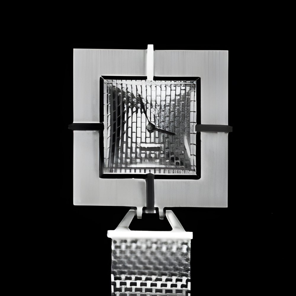 Modern treatment of a traditional theme. This new chatelaine (rob watch) has the highly fashionable square shape and can be worn either by a man or a woman. It is in i . gold with four raised white gold indices The chain texture is cleverly matched in the dial. (CORUM - “Grand Mérite”)
