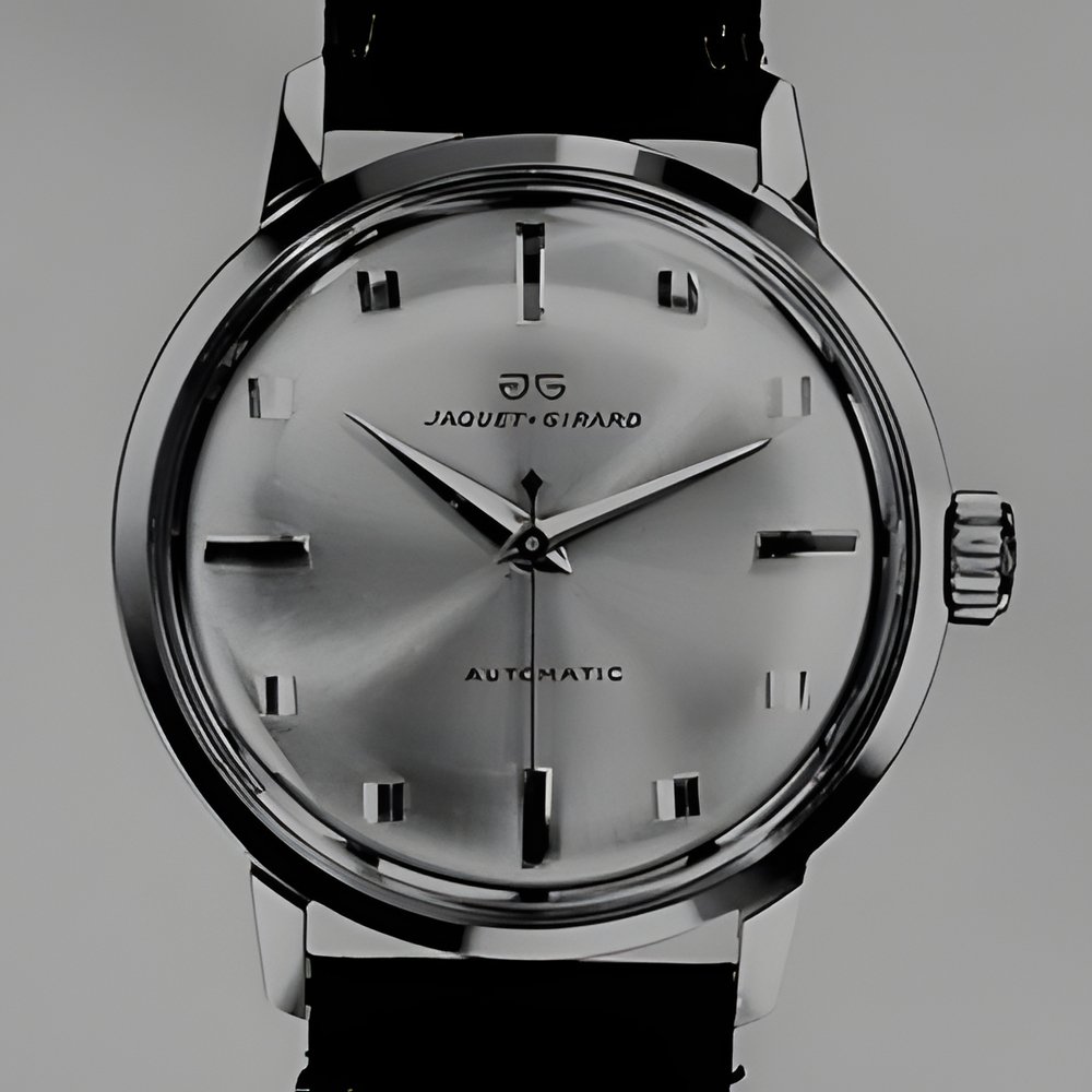 Guaranteed waterproof to a depth of 360 feet is this new automatic which is manufactured with the recently introduced vacuun sealing technique, preventing condensation and aiding lubrification. Also available with date calendar. (JAQUET-GIRARD - Airvac)