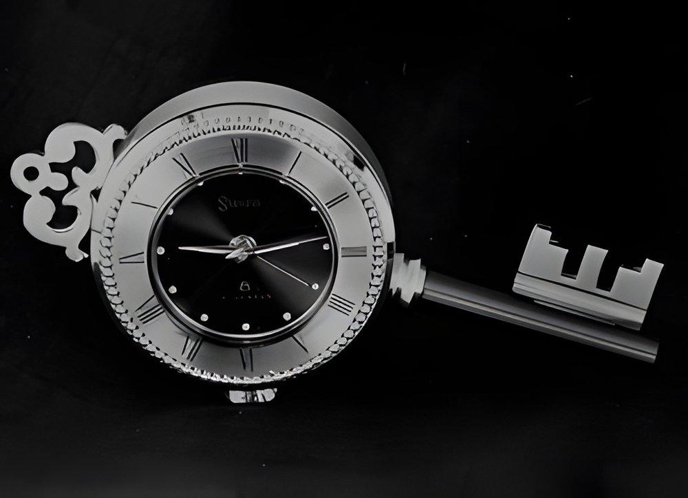 “Key to better time” seems to be the design idea behind this novel alarm clock. The movement is in large volume production which can be adapted to meet varying requirements (such as one or eight day, with or without calendar) - greatly simplifying service and spare parts requirements. (SWIZA)