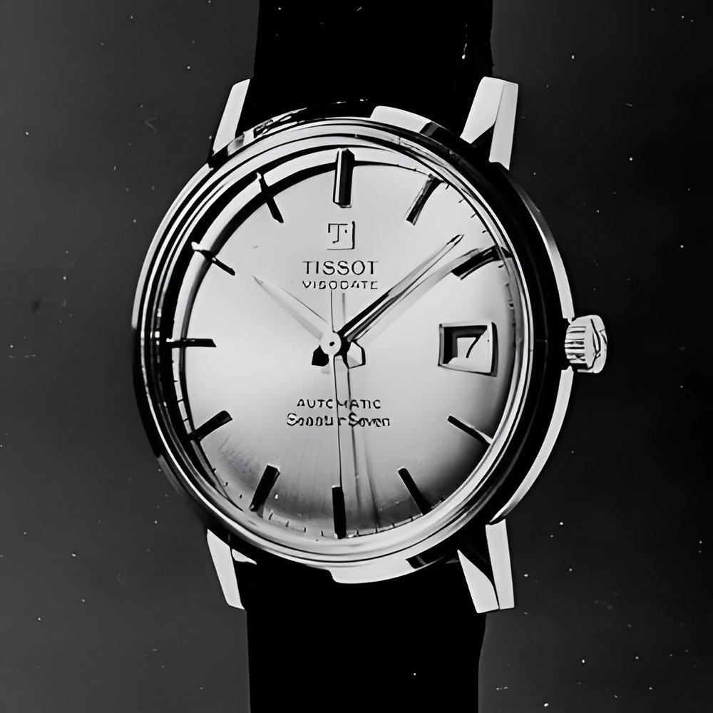 Monocoque (or unitary) construction is used for the case of the new Seastar Seven. The case is manufactured as a complete unit and the movement mounted through the front before pressure sealing of the gass. Watch itself is automatic with calendar. (TISSOT)