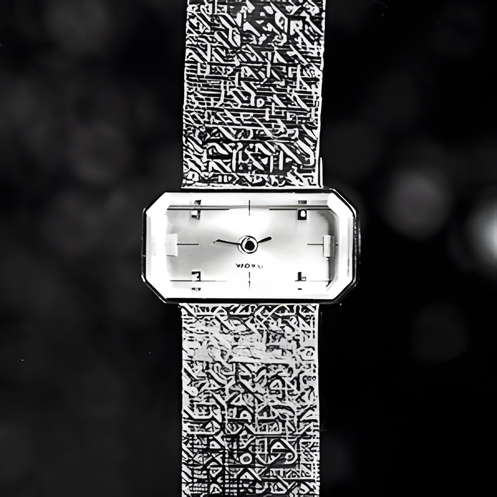 Last year’s baguette shape gets a new angle and becomes this year’s transversal from the Swiss stylists. The plainly severe baguette line is softened. here by the cut off corners on the yellow gold case. The wide bracelet has a. diamond cut pattern. (Watch by Bulova)