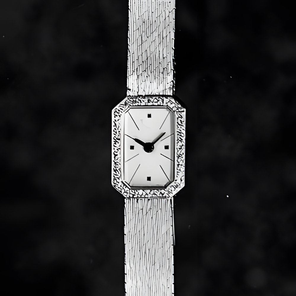 Cut-off corners soften the square styling of this modish ladies’ watch which seems destined to remain in fashion for decades to come. An elegant Vacheron Constantin creation in grey gold, with a diamond ringed dial and a wonderfully supple bracelet. (Watch by Vacheron Constantin)