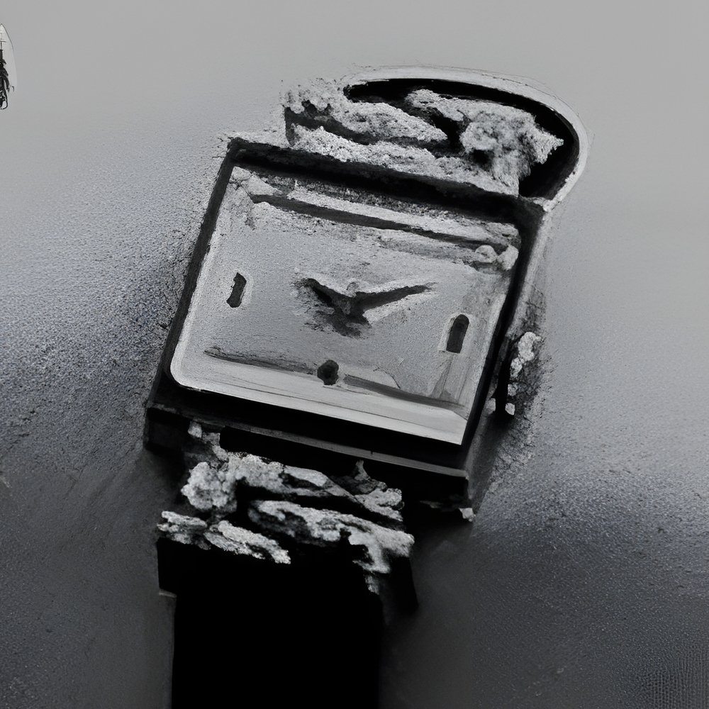 Elegant and unusual new styling treatment for this afternoon watch in grey gold, almost rectangular in shape with a plain, plain dial. The case is adorned with two motifs in native gold, worked with a new method called ’pepite, which aims to recreate the bock of the original rough metal. (Watch by Hy. MOSER)