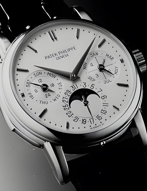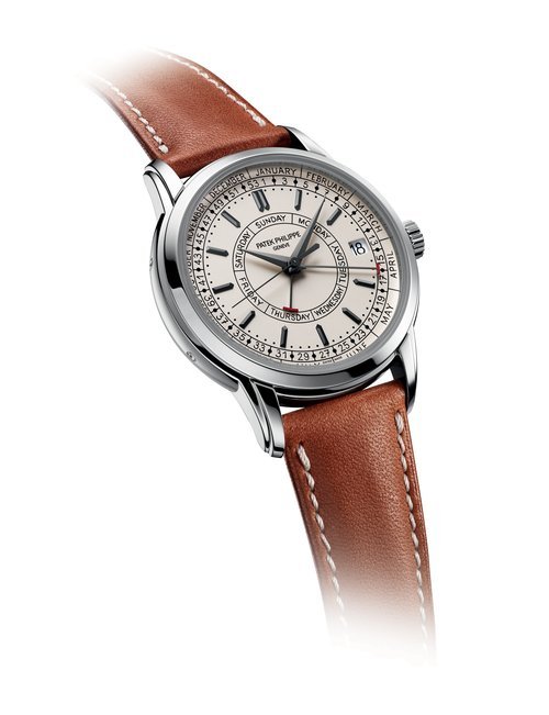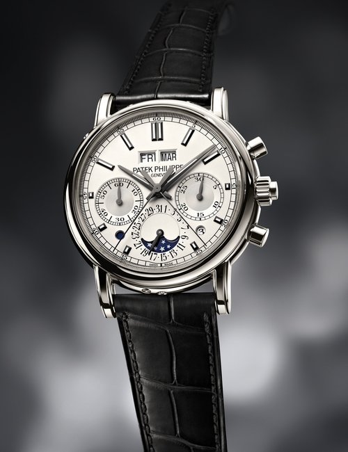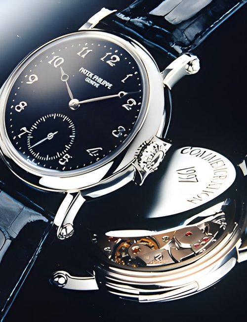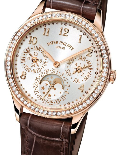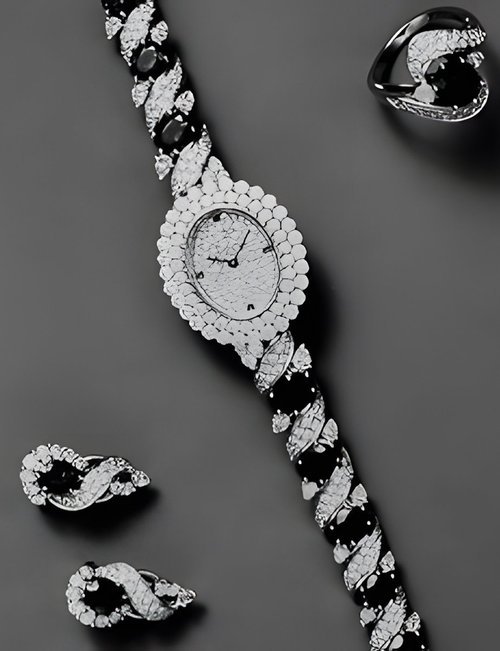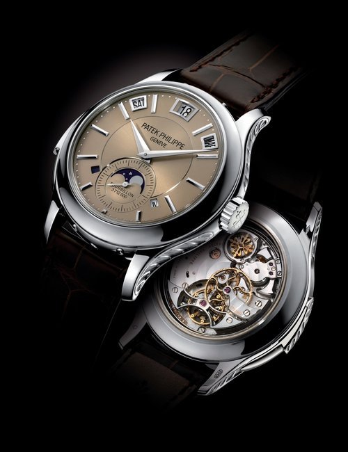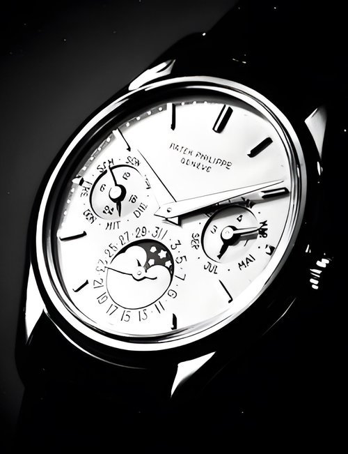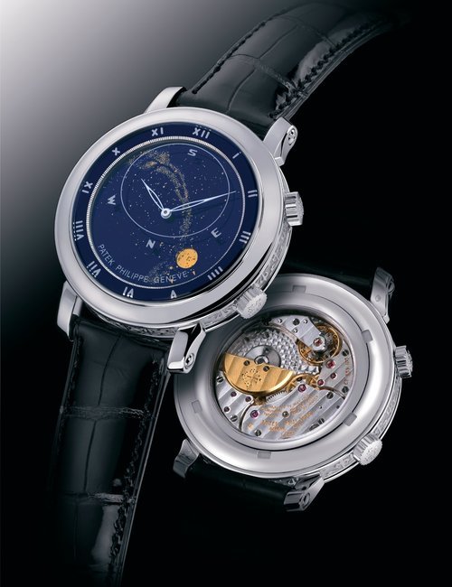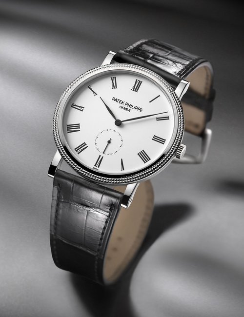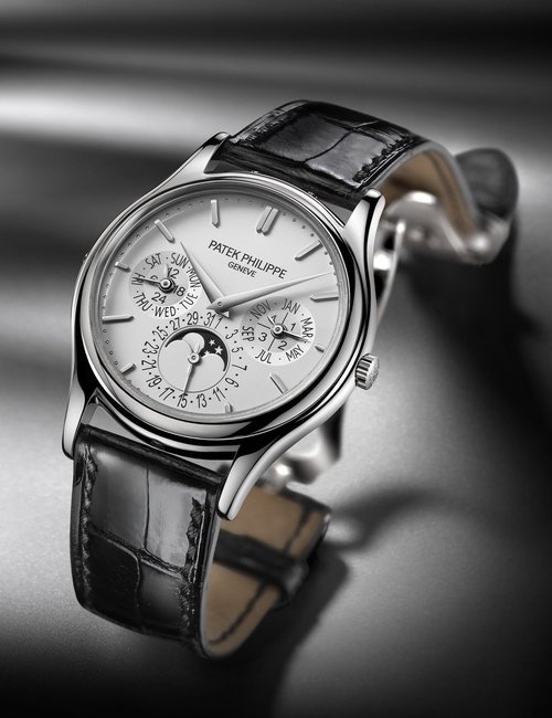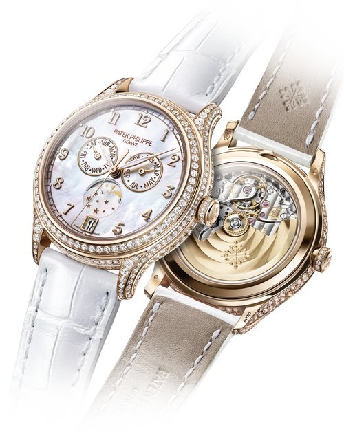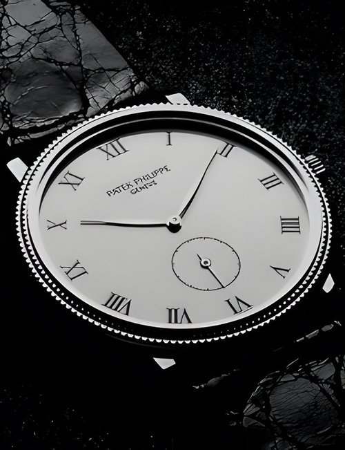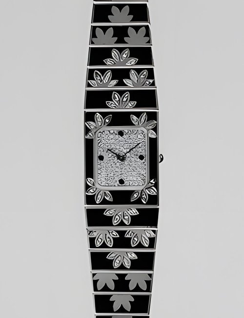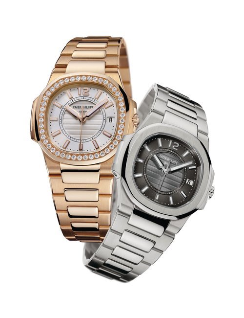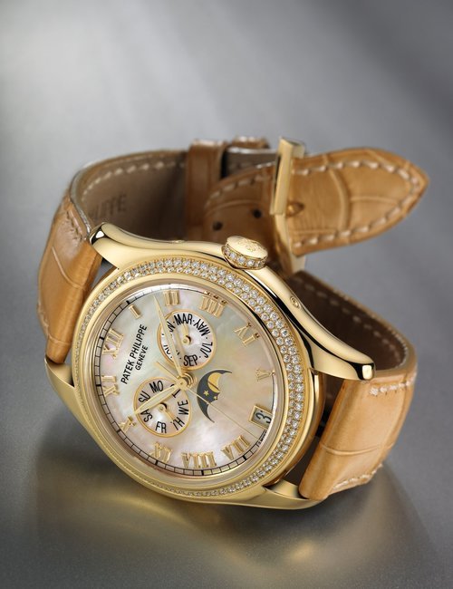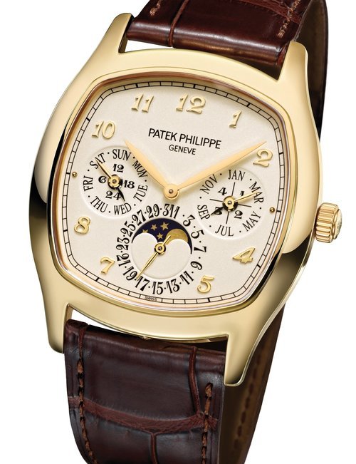 This elegant extra-flat man’s dress watch has an extra distinction: a new movement, caliber 175. The movement has a total height of only 1.75 mm and yet is fully shock proof - the first time that shock protection has been incorporated into such a flat mechanism. In addition it incorporates the new Giromax regulating system which gives greater accuracy. Styling note : the watch is in white gold, oval shaped and set with diamonds. It has a diamond-cut bracelet design. (PATEK PHILIPPE)