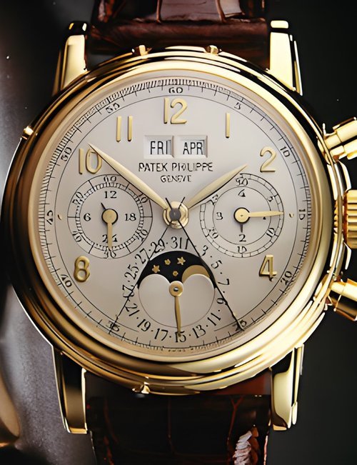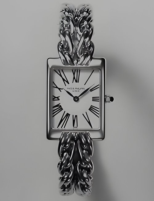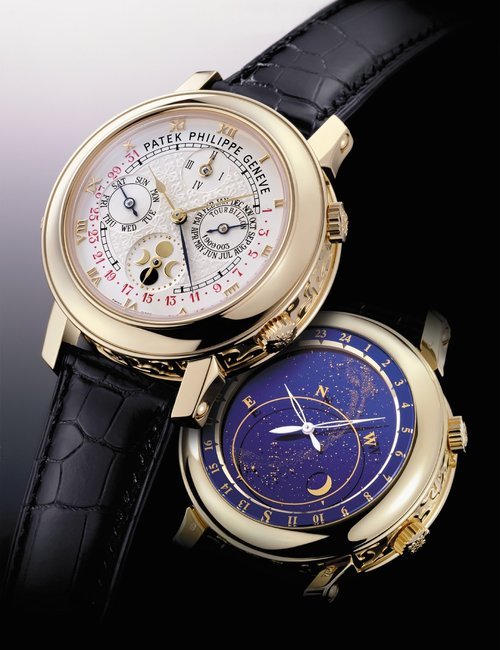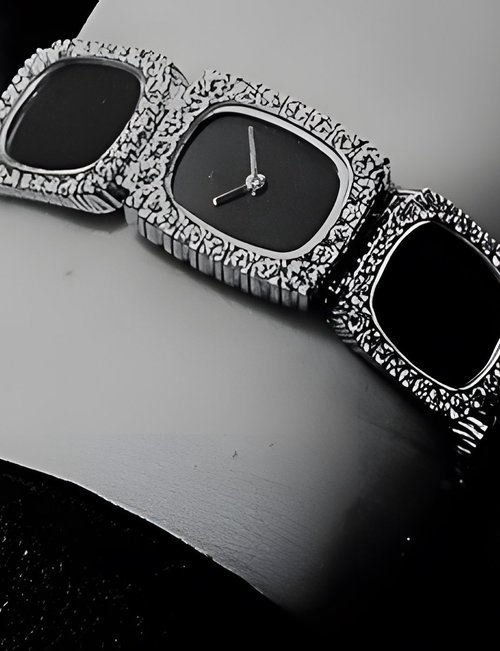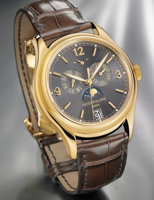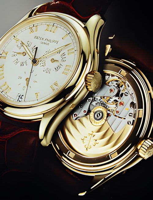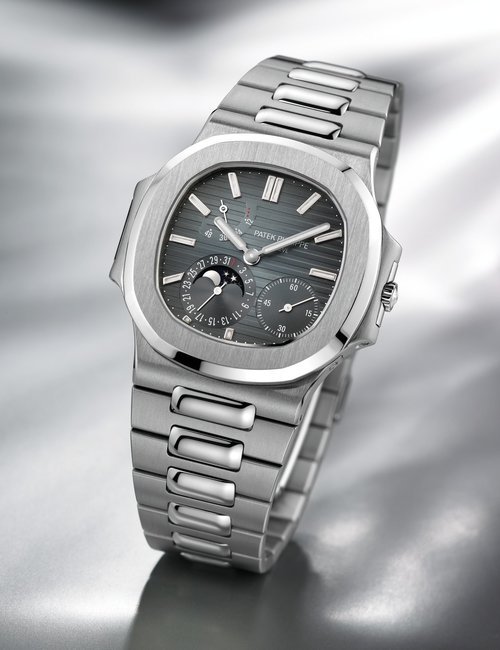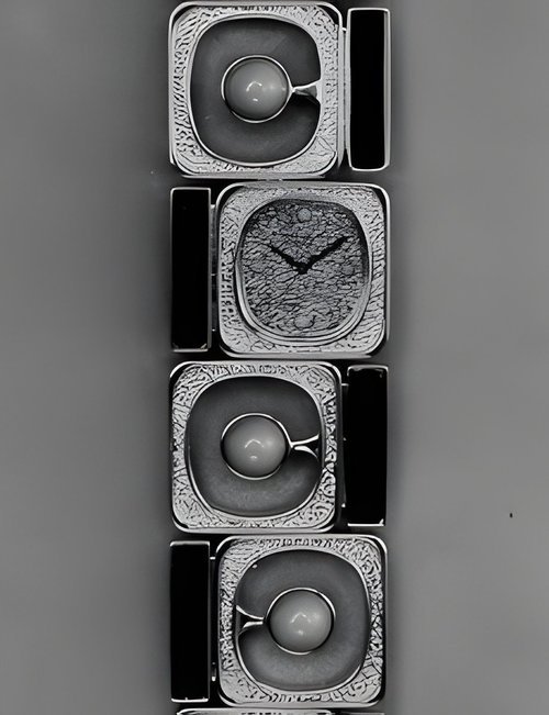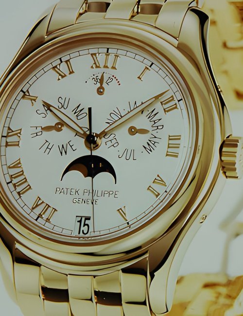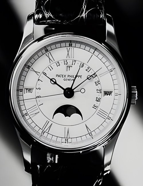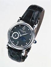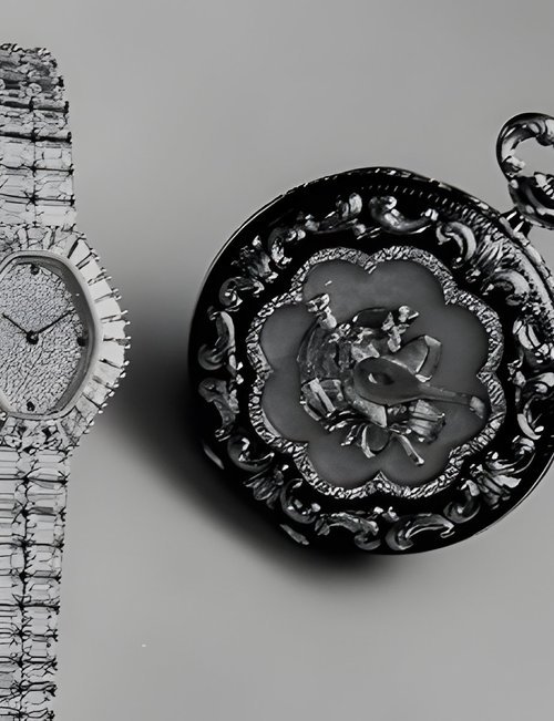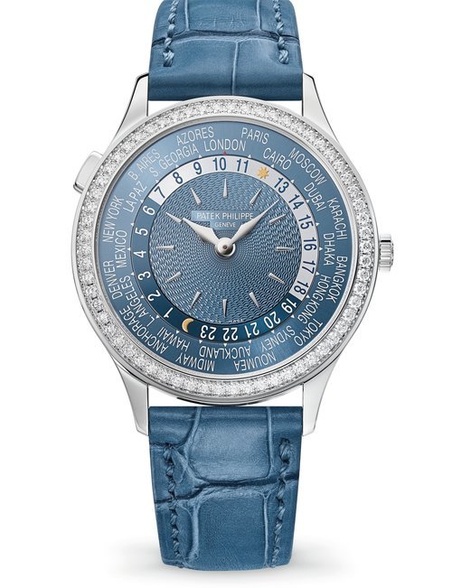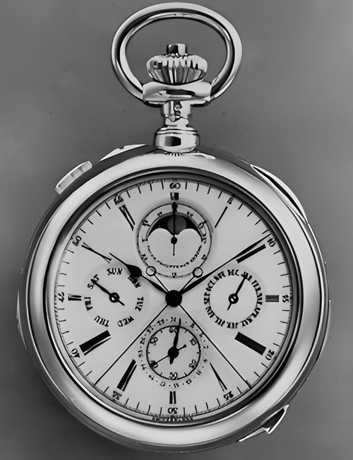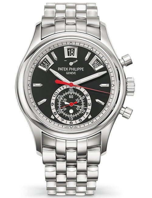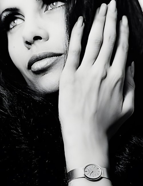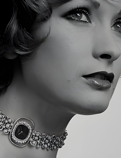 This elegant extra-flat man’s dress watch has an extra distinction: a new movement, caliber 175. The movement has a total height of only 1.75 mm and yet is fully shock proof - the first time that shock protection has been incorporated into such a flat mechanism. In addition it incorporates the new Giromax regulating system which gives greater accuracy. Styling note : the watch is in white gold, oval shaped and set with diamonds. It has a diamond-cut bracelet design. (PATEK PHILIPPE)