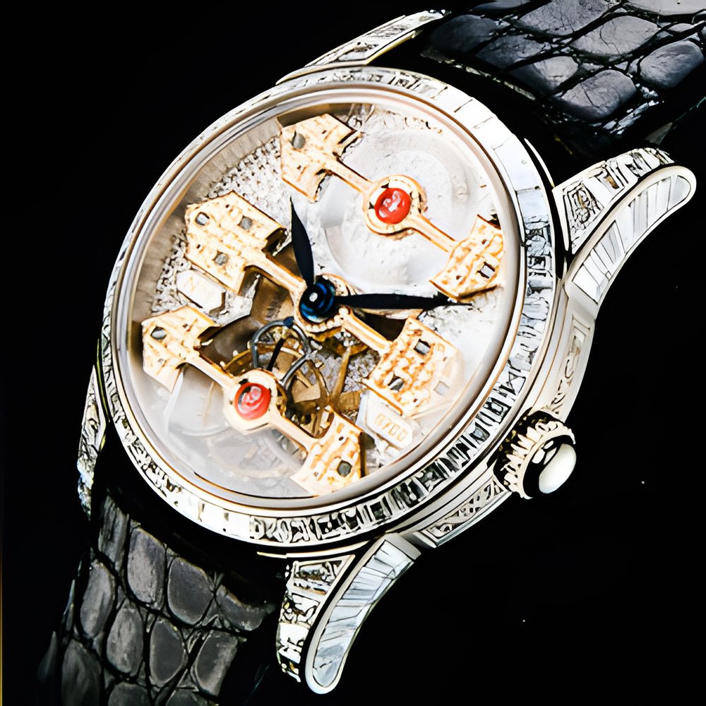 Without the slightest technical concession, the Girard-Perregaux Manufactory’s legendary Tourbillon with Three Gold Bridges is housed in a 31 mm diameter case. A real tour de force for the most delicate of wrists, this model is fitted with a GP 9700 movement and is available in yellow, pink or white 750 (18K) gold or platinum. There is also a jewellery version, with 48 trapeze-cut diamonds on the bezel and 40 diamonds on the horns, totalling 5 carats.