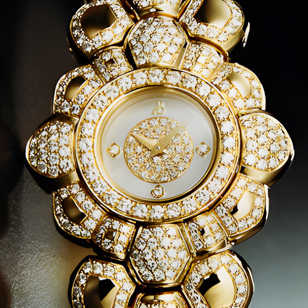 This hand-made creation, the latest in the brand’s luxury jewellery collection, is reminiscent of honeycomb. Over 250 hours of work went into this masterpiece, comprising 121.35 grams of 750 (18K) yellow gold and 453 full-cut, colour F, VVS1 diamonds (approx. 3.67 carats). The 35 mm case houses a Piguet 6.20 quartz movement. Dial with mother-ofpearl exterior around a diamond-paved centre. Gold dauphine hands, scratch-resistant sapphire crystal, pressure case back, integrated diamond-set crown, and flexible bracelet with three-part clasp. Delivered, along with documents, in a burr elm presentation box in a leather case.