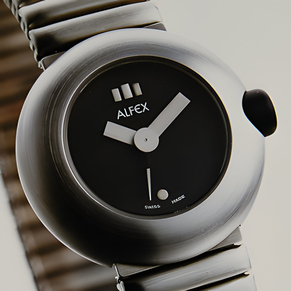 This unisex model with its softly rounded, polished curves comes on an adjustable Fix-o-Flex steel bracelet. The winding crown on the matching steel case is decorated with a synthetic black or blue cabochon with metal centre. The hour markers and hands on the silver, blue or black dial add a further touch of refinement to this new design by Georg Plum. Mineral crystal. Waterresistant.