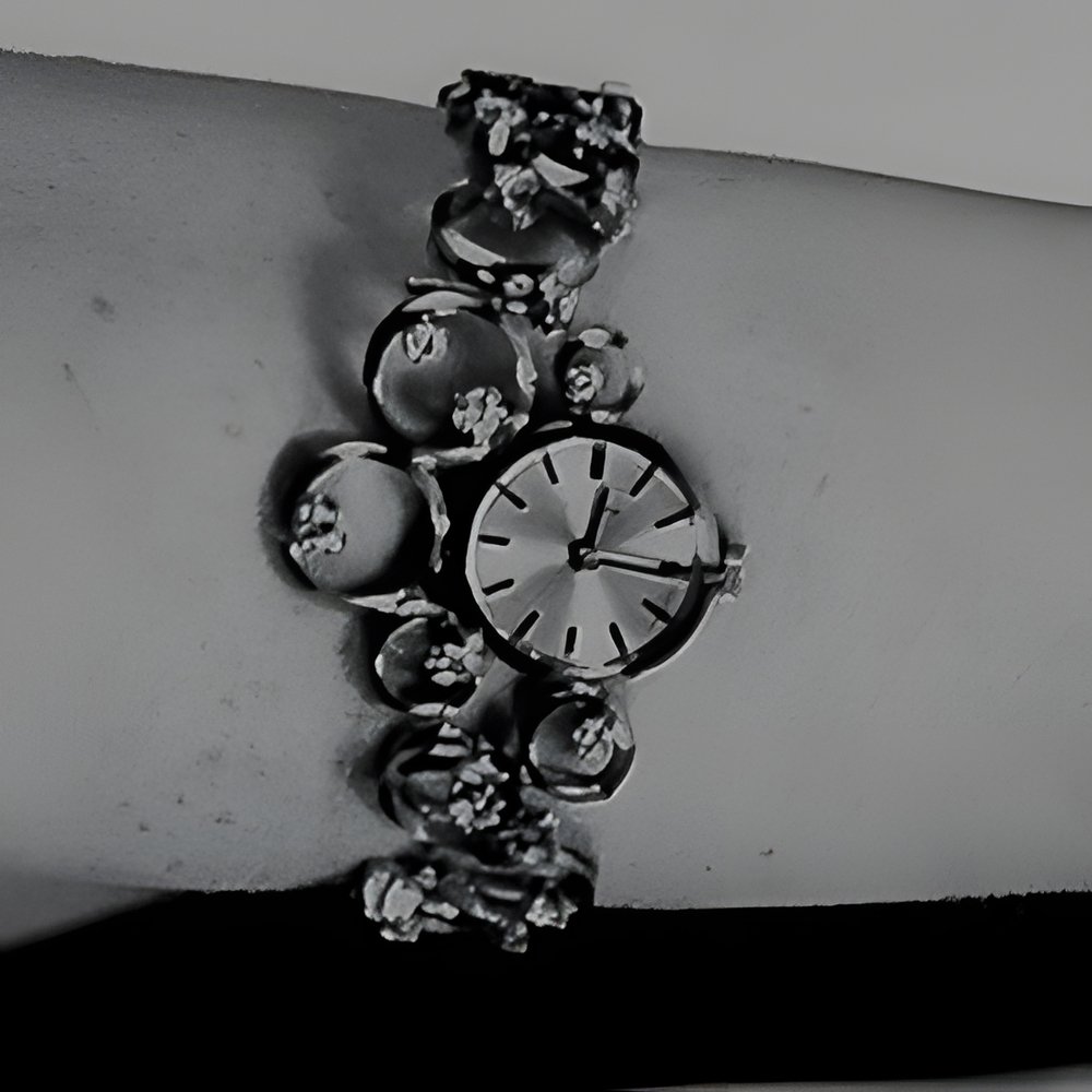 The bracelet of this jewelled, watch is made up of flat rings, studded with 36 diamonds. The watch itself is set in one of the rings. (Watch by Zenith)