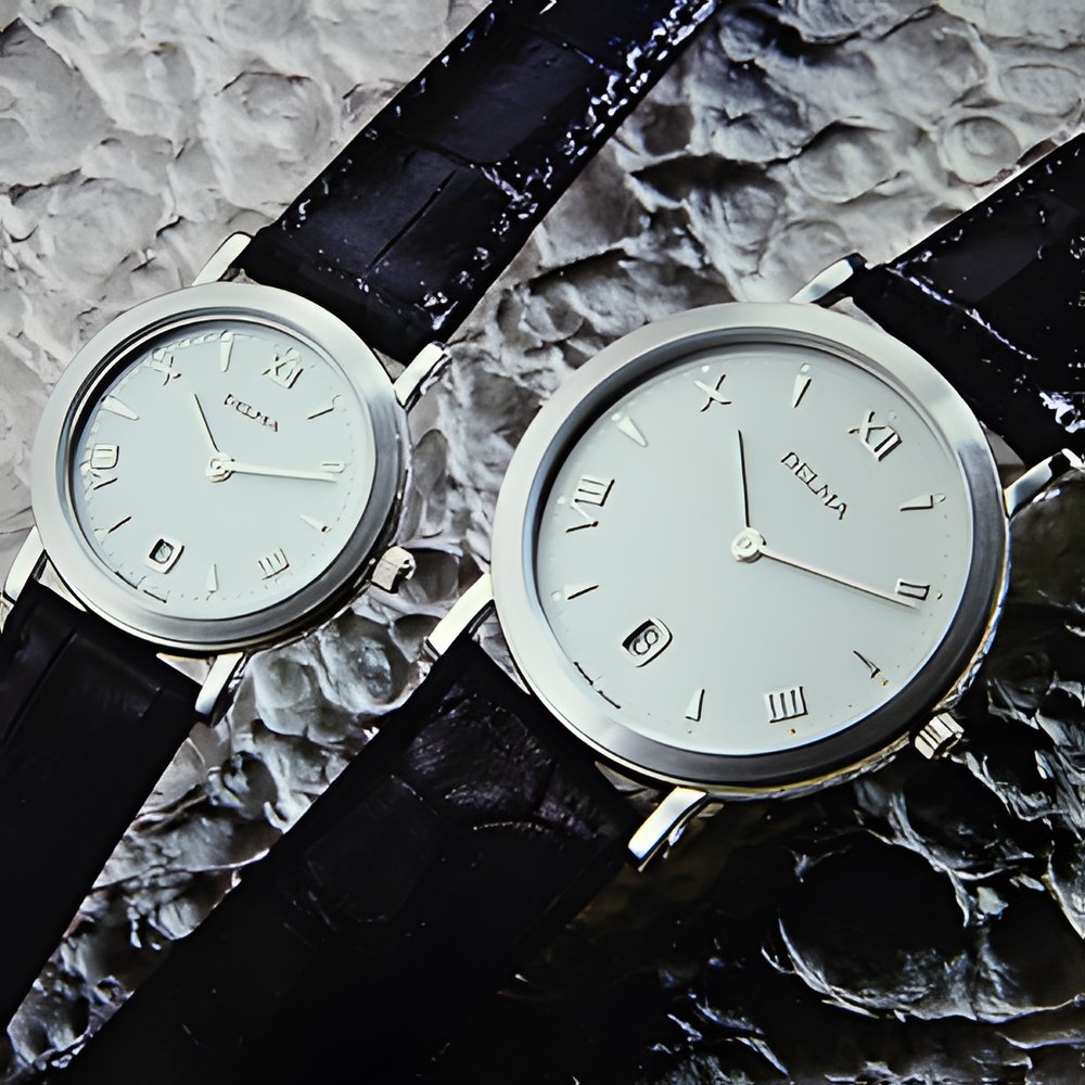 This watch offers a highly-prized precious metal at an exceptionally reasonable price, with 20.5 g of platinum in the ladies’ version and 27 in the men’s. Equipped with an ETA quartz movement, this classic timepiece features a white enamel dial with applique Roman numerals and hour markers, and a date window at 6 o’clock. The highly-polished case sides and brushed bezel are set off by a black genuine leather strap.