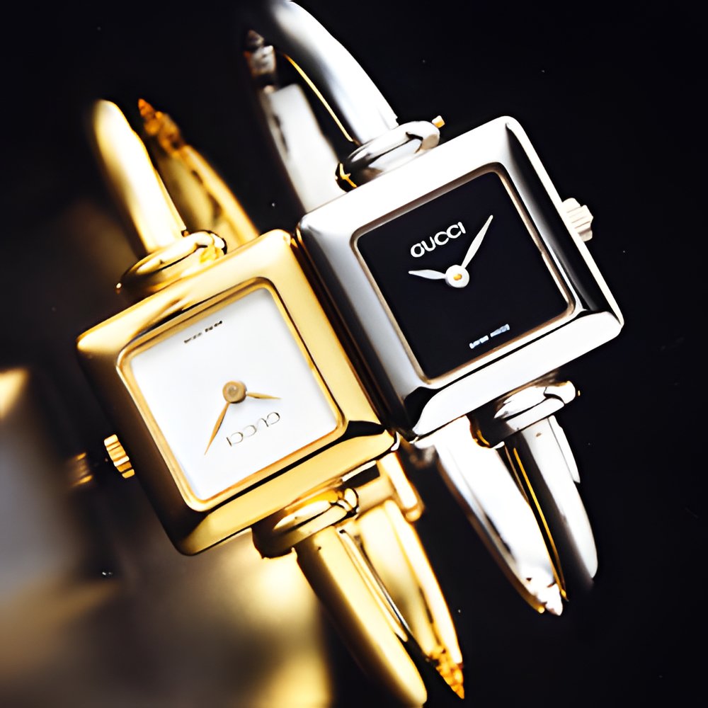 The pure geometry of a square, often interpreted by Gucci, is underscored here by the godroons on the attachments. This small, sophisticated watch, fitted with an ETA quartz movement, is available in steel or 10-micron goldplated versions on a bracelet with a clasp engraved with the brand’s logo. Water-resistant to 30 m. Sapphire crystal.