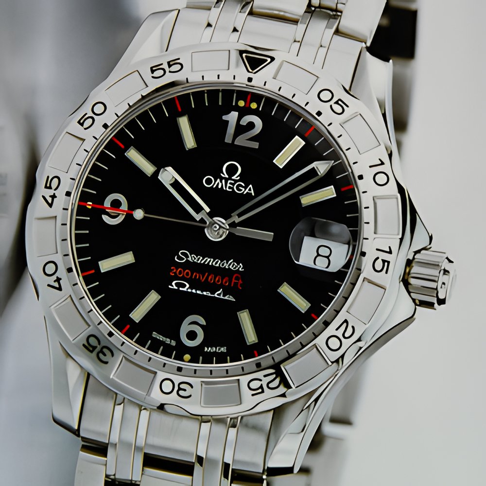 The ecological technology of the future : a quartz movement which rewinds automatically so does not need a battery. The energy is generated by the movement of the wrist and the system can be activated with the crown. Maximum power-reserve of 6 days. With a screw-down crown and back, unidirectional rotating bezel, tritium-coated skeleton hands and sapphire crystal with magnifying glass, the new stainless steel Searnaster is water-resistant to 200 m.