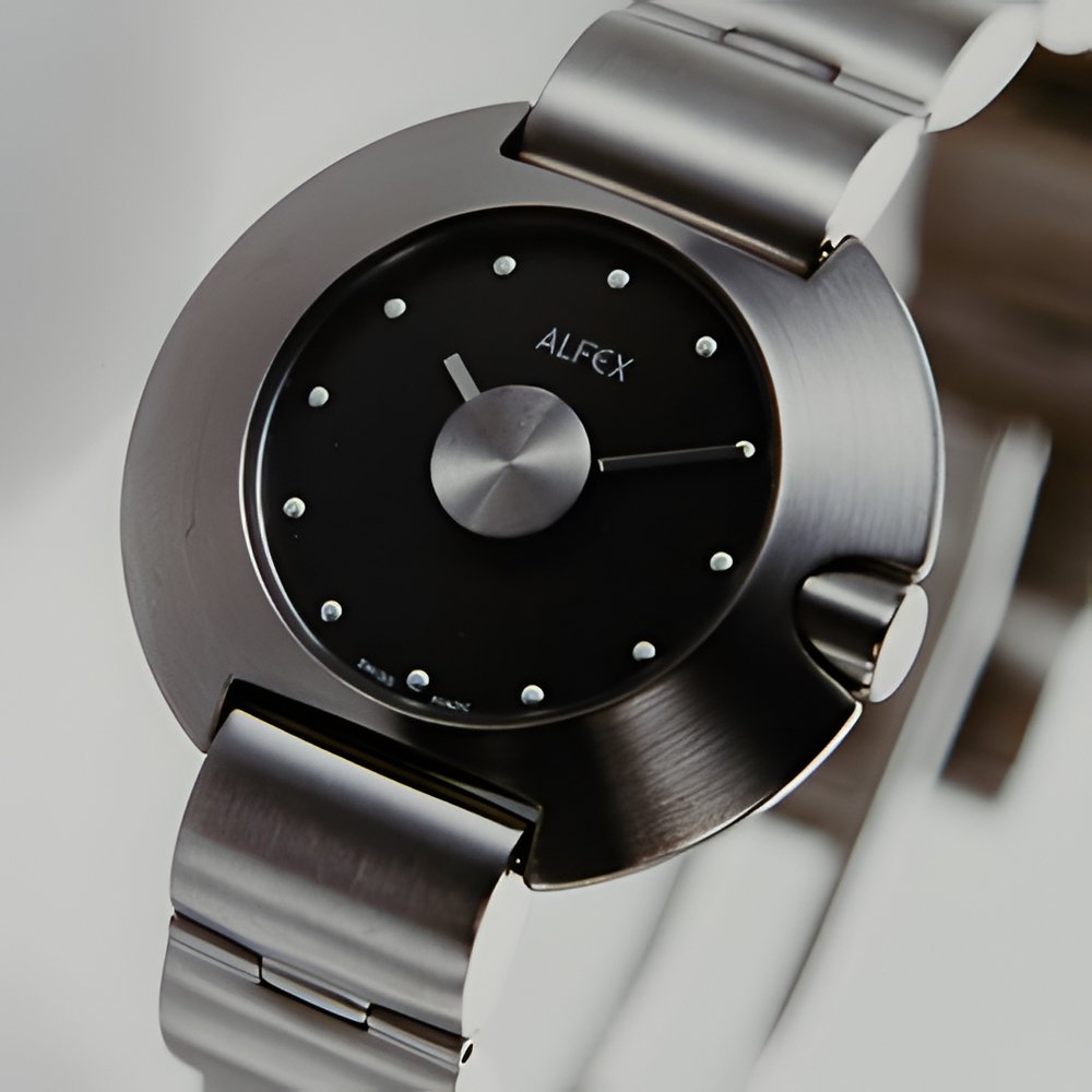 An interplay of flat surfaces for this contemporary model in matt steel. Both the bracelet with invisible clasp and the cylindrical crown are subtly integrated with the roundness of the case. The hand-brushed anthracite, silver or champagne dial is protected by a mineral glass with a metal plate fitted at the centre. This ladies’ model has a quartz movement and is water-resistant to 30m.