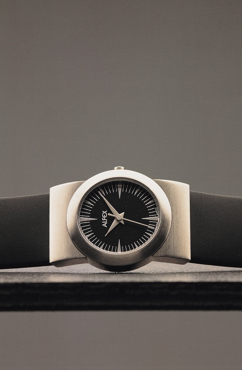 Moments is a very avant-garde collection of watches, all designed by contemporary artists. Designed by Georg Plum, the 5404 has a round case with a wide bezel and steel attachments and comes on a rubber strap, aerated with invisible perforations. The dial is distinguished by twelve sharp-angled hour markers pointing towards the centre.