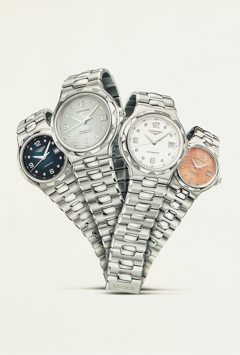 Conquest by Longines, created in the 1950’s, has always keep abreast of changing trends to safeguard its place at centre stage. Today, it appeals to those who like to combine sportiness with elegance. The new collection comprises quartz and automatic models in six different sizes, in steel or two-tone versions, with a large choice of dial colours.