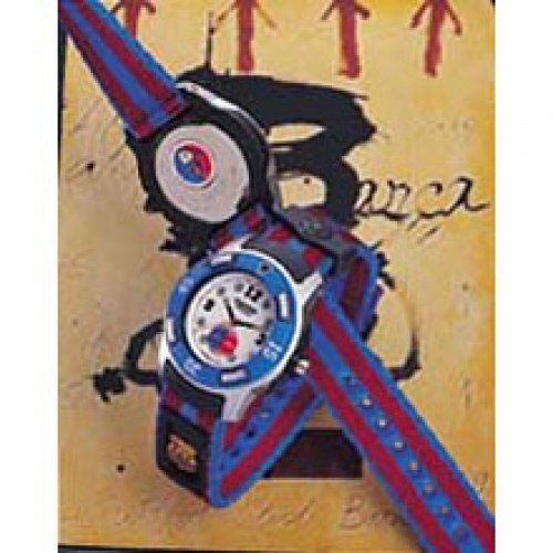 Dedicated to the glory of football, Calcio-Swiss watches feature a round case, official FIFA football-shirt numbers, a rotating bezel for timing the halves and any overtime periods, and a stud-shaped crown. This model celebrates the anniversary of FC Barcelona with the logo 1899-1999 on the dial, the Barça colours on the strap, and the club’s mascot on the case-back.