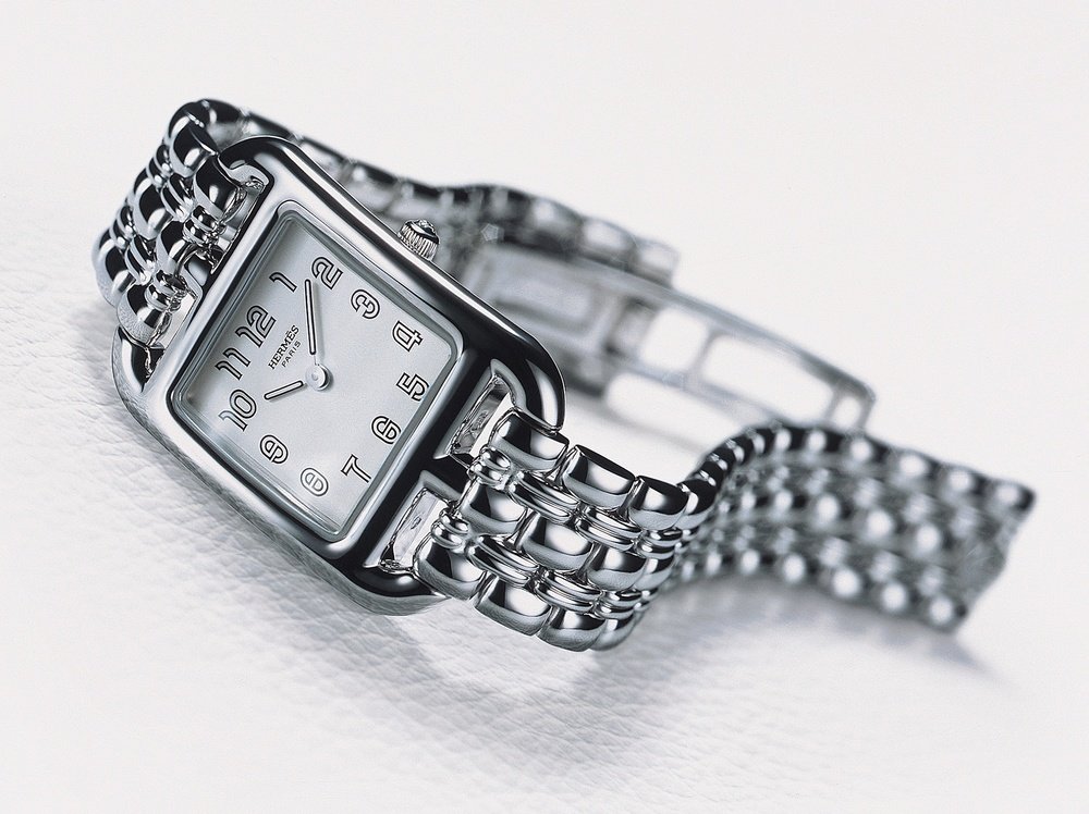 Its maritime character, robustness and simplicity have given this collection the name of the famous cape on America’s eastern seaboard. The ladies’ version has now been made in steel for the first time. Its characteristic case, which recalls the links in the Hermès Anchor Chain line of jewellery, comes with a choice of the brand’s exclusive bracelets and straps : the pebble-link bracelet shown here, or the traditional or Double-Tour leather straps.
