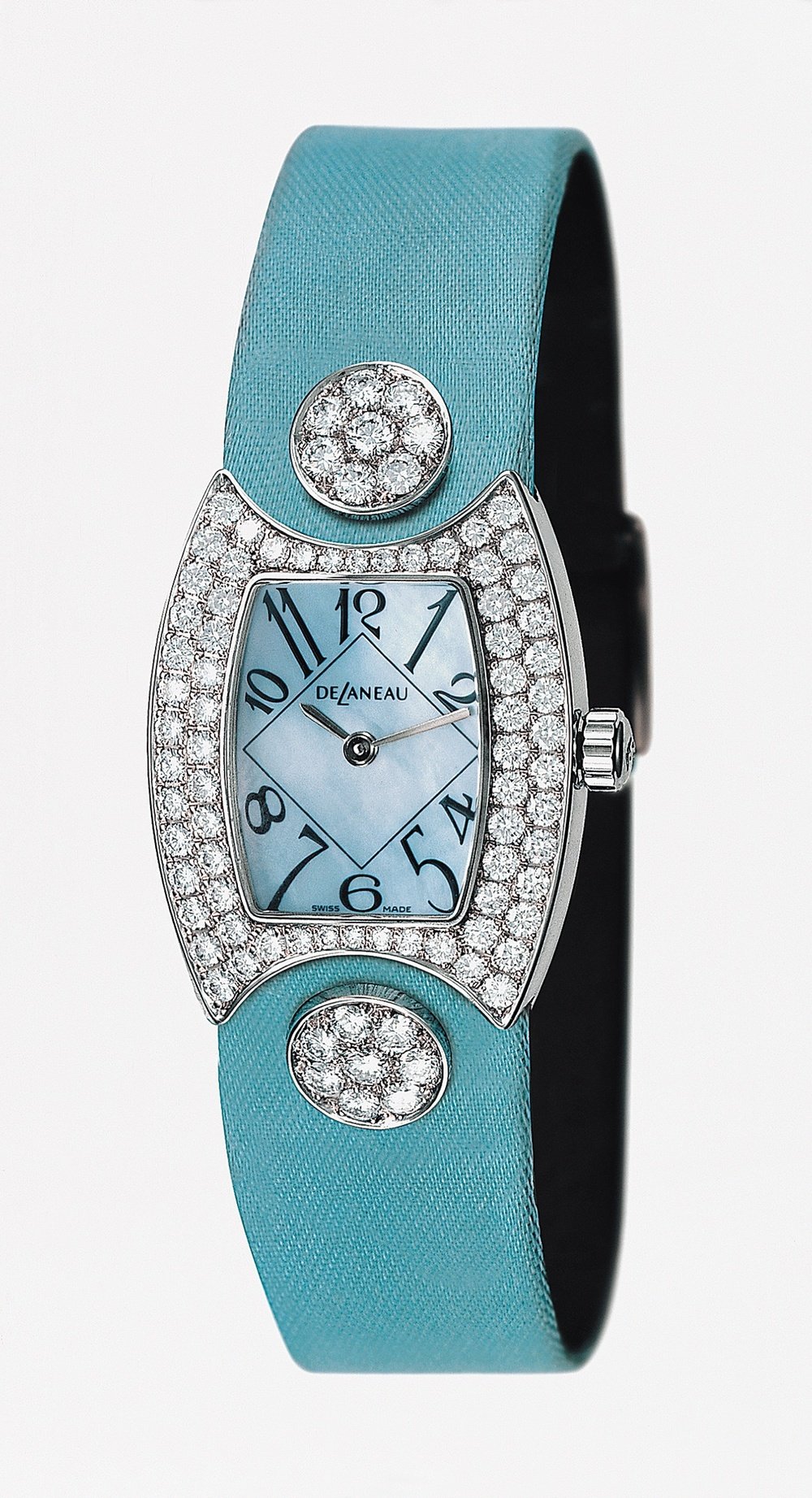 Four interchangeable straps : satin, leather, crocodile, lizard