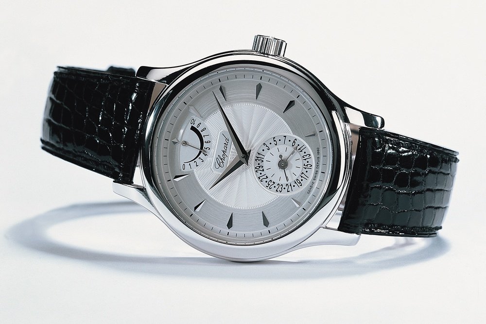 The L.U.C. Quattro is an exciting first for the Chopard Manufactory. The hand-wound mechanical movement is fitted with a quadruple barrel to give it an exceptional 10-day power reserve. This is indicated at 12 o’clock, with the date and small seconds on a sub-dial at 6 o’clock. The solid gold dial matches the case. This unique timepiece is available in white, yellow or pink gold.