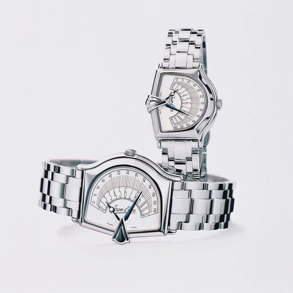 To commemorate the start of the third millennium, the Sectora 2000 has adopted an original approach to reading the time, on an angle of 120 degrees. When the hands reach the end, they automatically return to their starting point. The exclusive dial matches the specially designed unisex case.