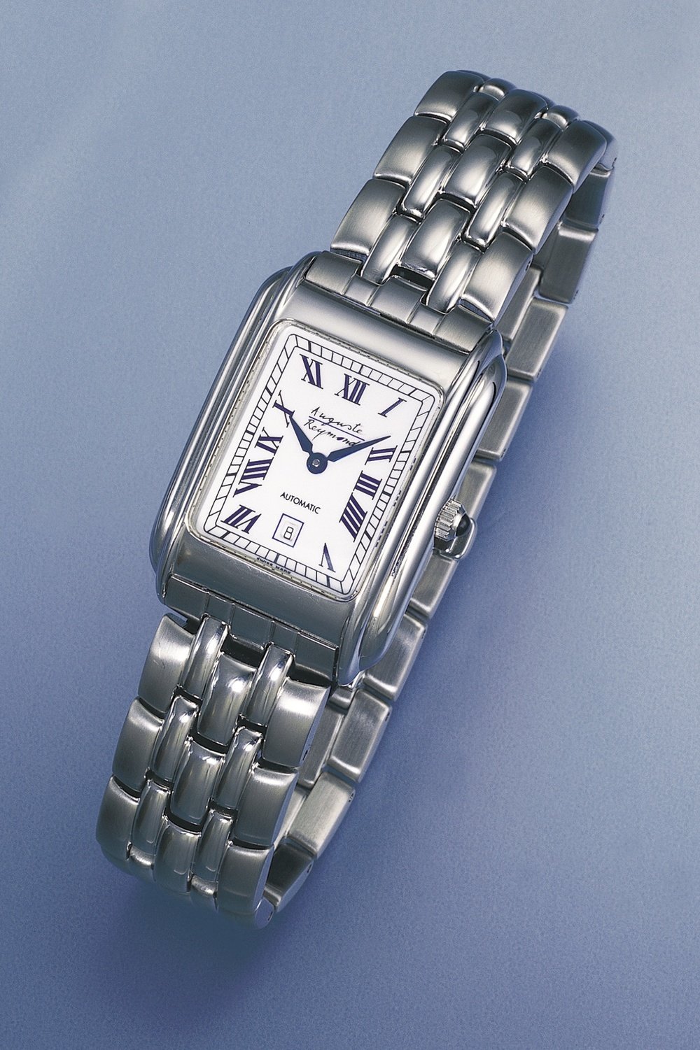 Auguste Reymond is celebrating the tenth anniversary of its Charleston collection with this highly original version. Giving the collection a new look, it has a steel case with a cambered sapphire crystal and a matching bracelet with a double-snap safety clasp. Its automatic movement is visible through the transparent back.