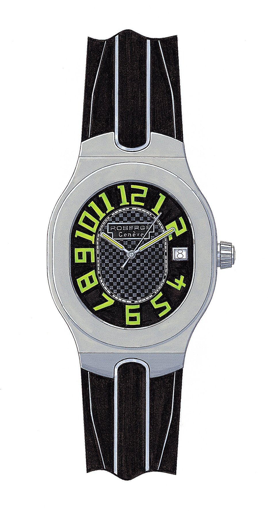 Altair, the brightest young star in the constellation Aquila, arrives in the world of watches like a messenger from the future. Fashioned in aluminium, it has a carbon fibre dial with luminescent indications. The case houses an astonishing generator movement that can recharge itself without the aid of a battery.